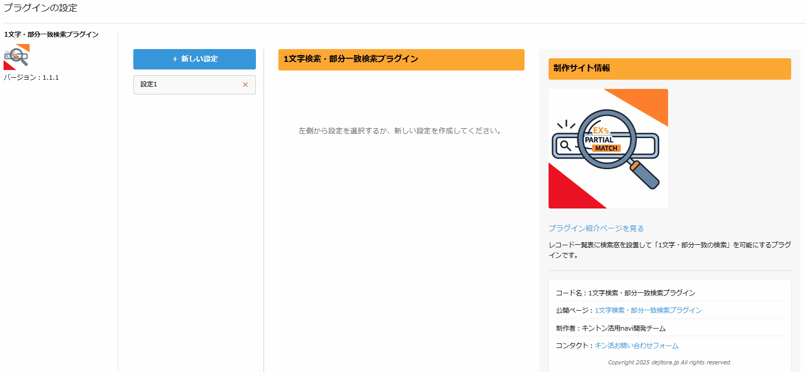 レコード一覧表に検索窓を設置して全角1文字や半角英数字の部分一致検索を可能にするプラグインです。