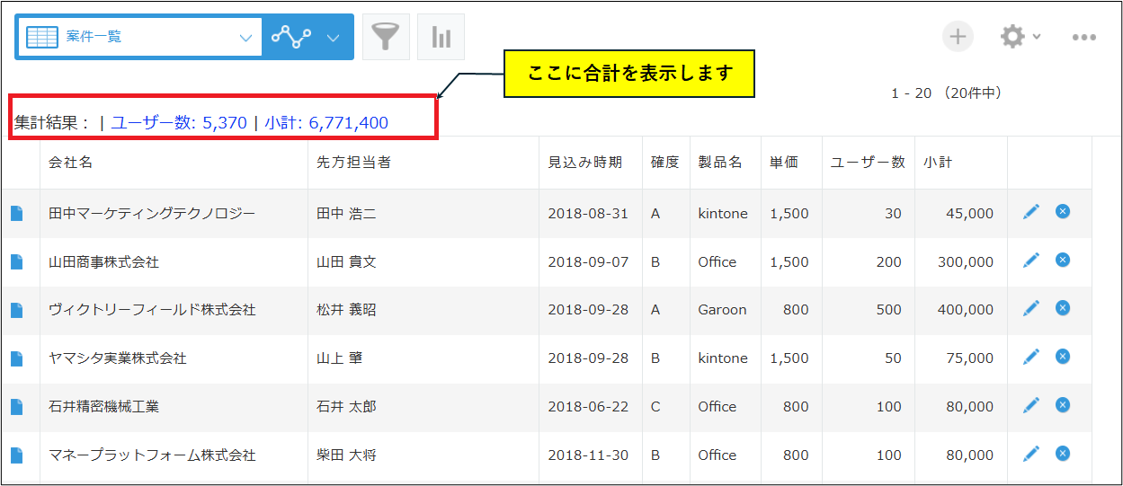 営業管理・受注一覧・請求一覧など、数値の集計が必要なシーンで大活躍します。