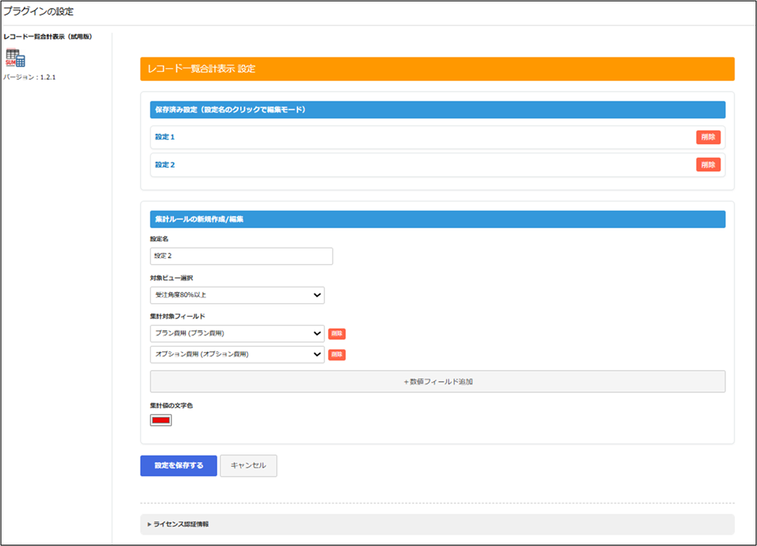 【名称】レコード一覧表合計表示プラグイン