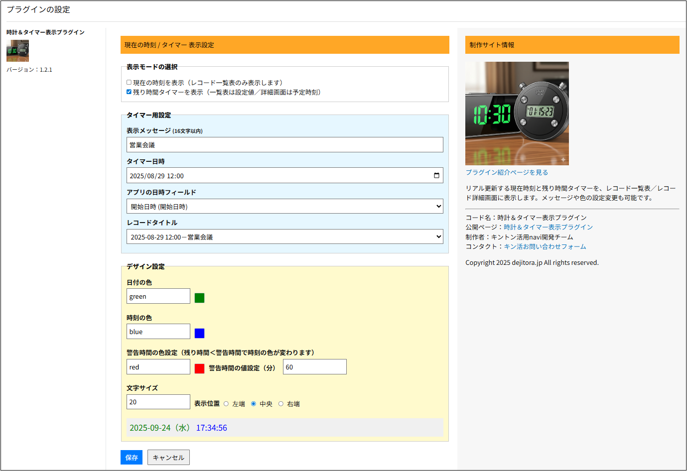 【名称】時計&タイマー表示プラグイン