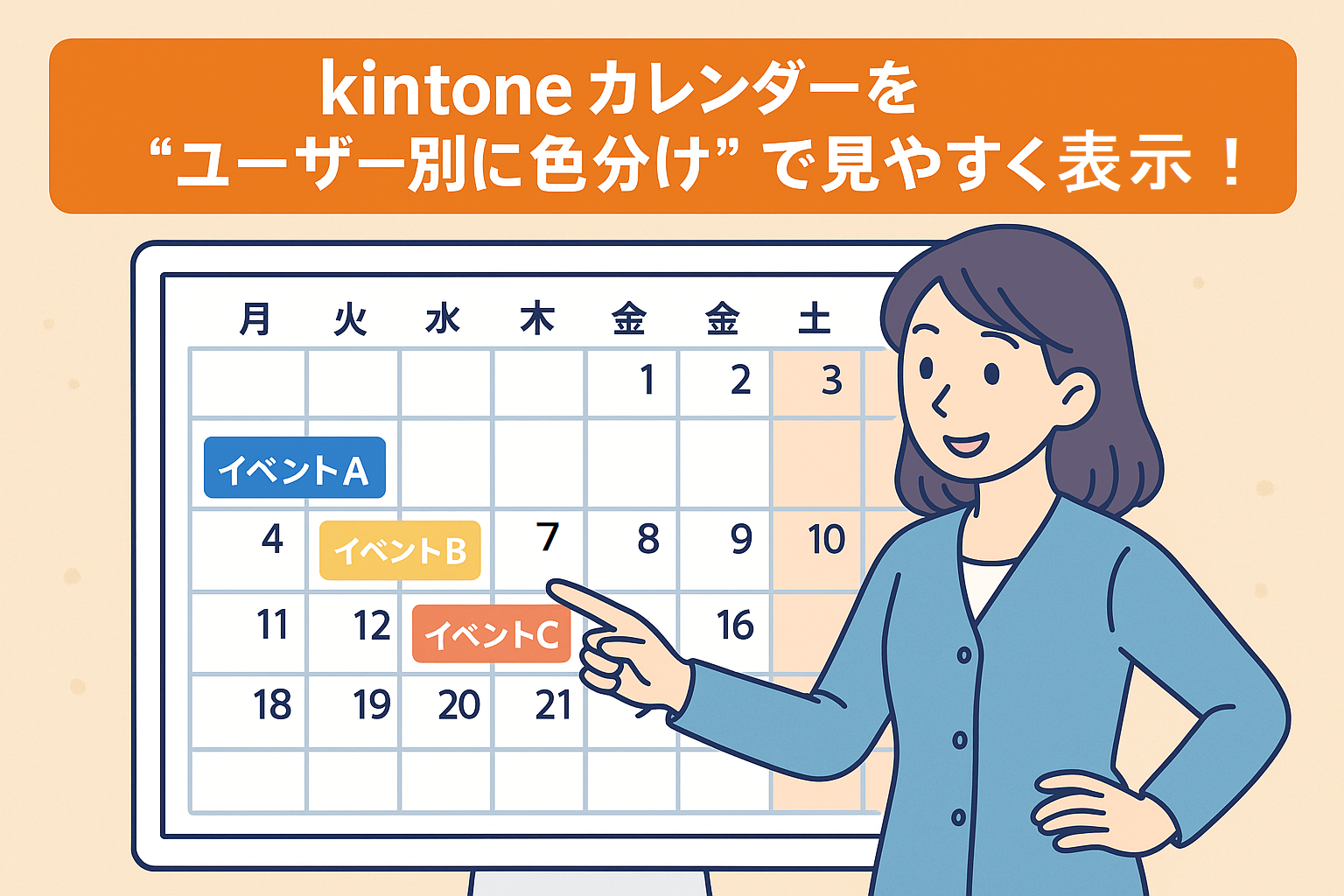 kintoneの標準カレンダーにユーザー別の「色分け」を加えるだけで、予定の視認性が大幅に向上します。