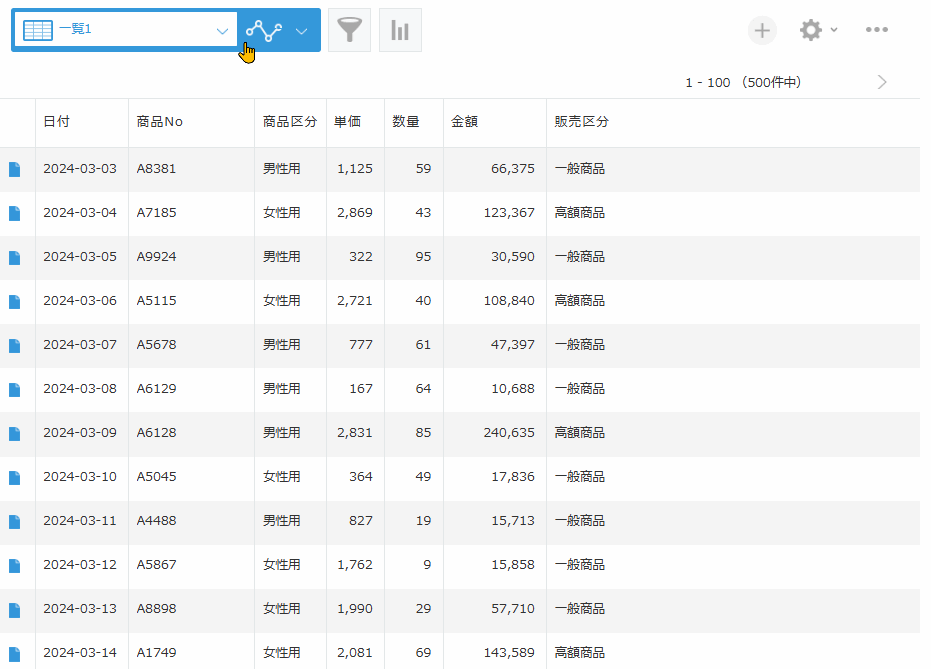 | 設定自由度高い | 行・列のキーは日付・商品区分・販売区分など自在 |
