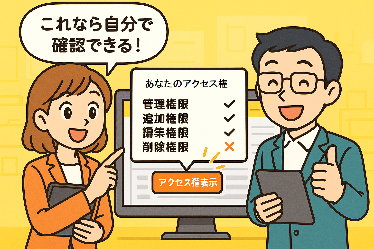 - ユーザー自身でアプリやレコードに対する権限をその場で確認したいというニーズに応えるカスタマイズです。