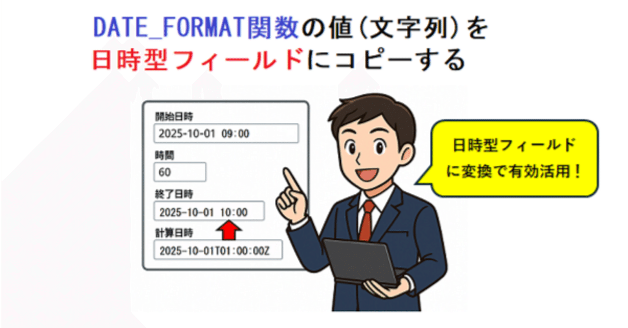 認識できる「日時データ」として日時型フィールドに自動コピーすることで、この悩みをまるっと解決するのが目的です!