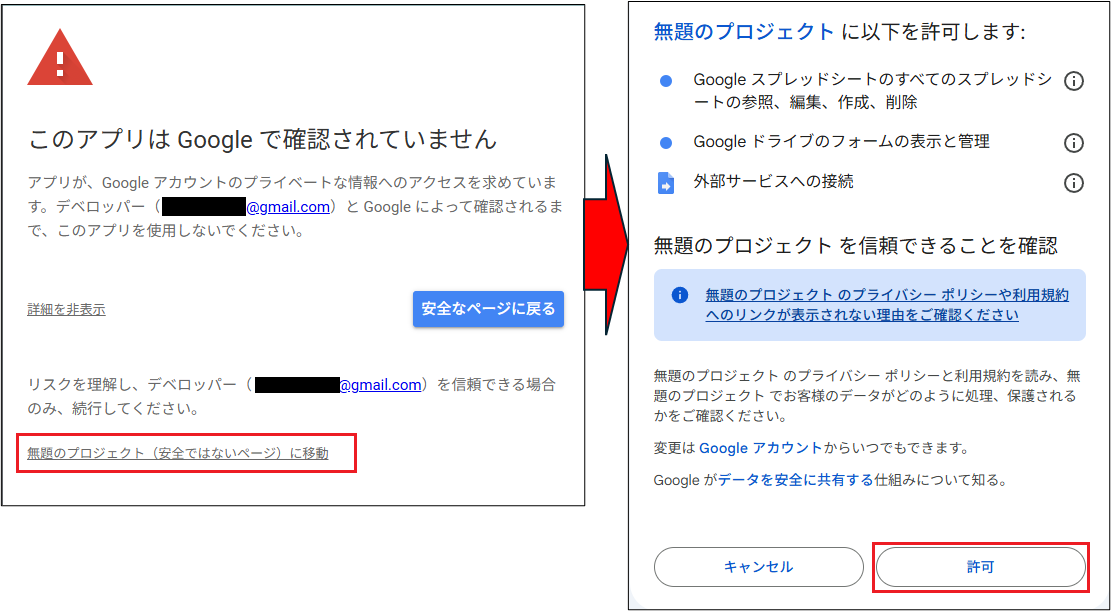 新規作成したプロジェクトにGooogleアカウントへのアクセス権を許可します。