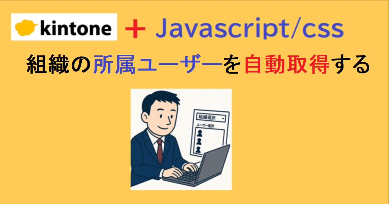 やりたいこと 今回は、ドロップダウンの組織選択で「所属ユーザー」全員をユーザー選択フィールドに自動セットするカスタマイズ事例を紹介します。 何ができるのか? ドロップダウンの「組織」を選択すると、組織に所属しているユーザーが、ユーザー選択フィールドに自動セットされます! ドロップダウンの組織の値を変更する都度、所属ユーザーを再検索して自動セットしますので、ユーザー選択を組織単位で行うことが出来ます。 また組織に所属しているユーザーが展開され「可視化」されます!  大きな会社で...