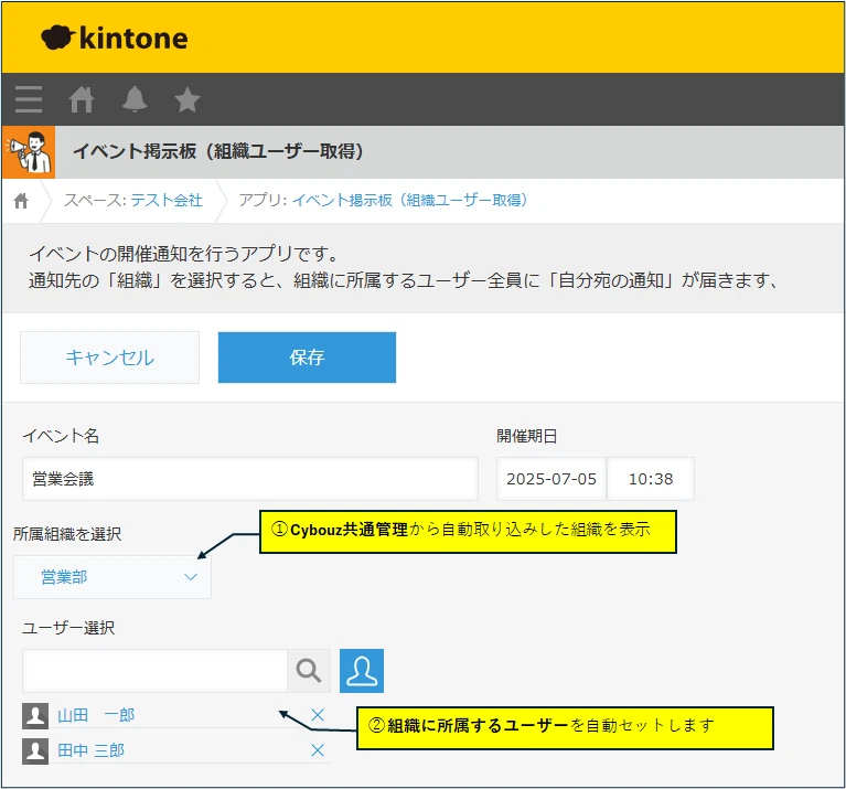 kintoneで「組織の所属ユーザー」を自動取得する