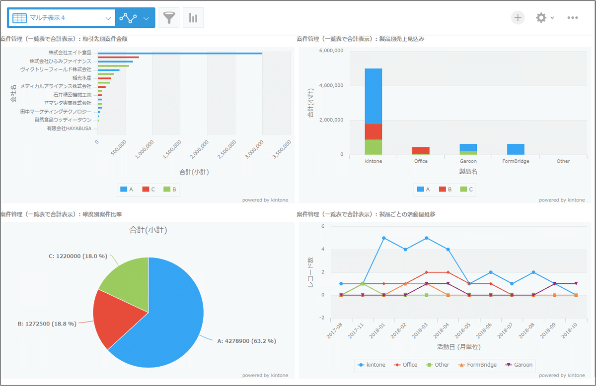 kintoneの標準機能を工夫するだけで、複数のグラフやクロス集計表を同時に表示できるようになります。